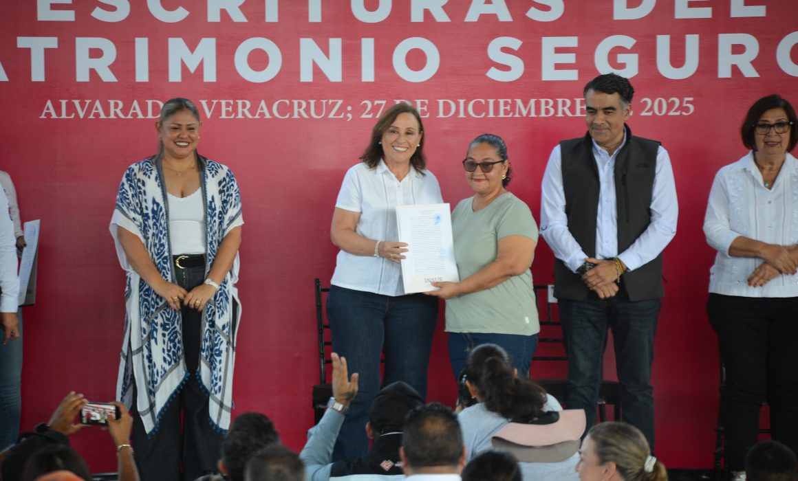 Rocío Nahle entrega 336 escrituras del programa “Patrimonio Seguro” en Alvarado Alvarado, Ver. – 28 de diciembre de 2025 — La gobernadora Rocío Nahle García encabezó este 27 de diciembre de 2025 la entrega de 336 escrituras de vivienda a familias del municipio de Alvarado, como parte del programa estatal “Patrimonio Seguro”, en coordinación con el Instituto Nacional del Suelo Sustentable (INSUS). Justicia social y certeza jurídica para las familias Durante el acto de entrega, Nahle García destacó que no es un trámite menor otorgar escrituras, sino un acto de…