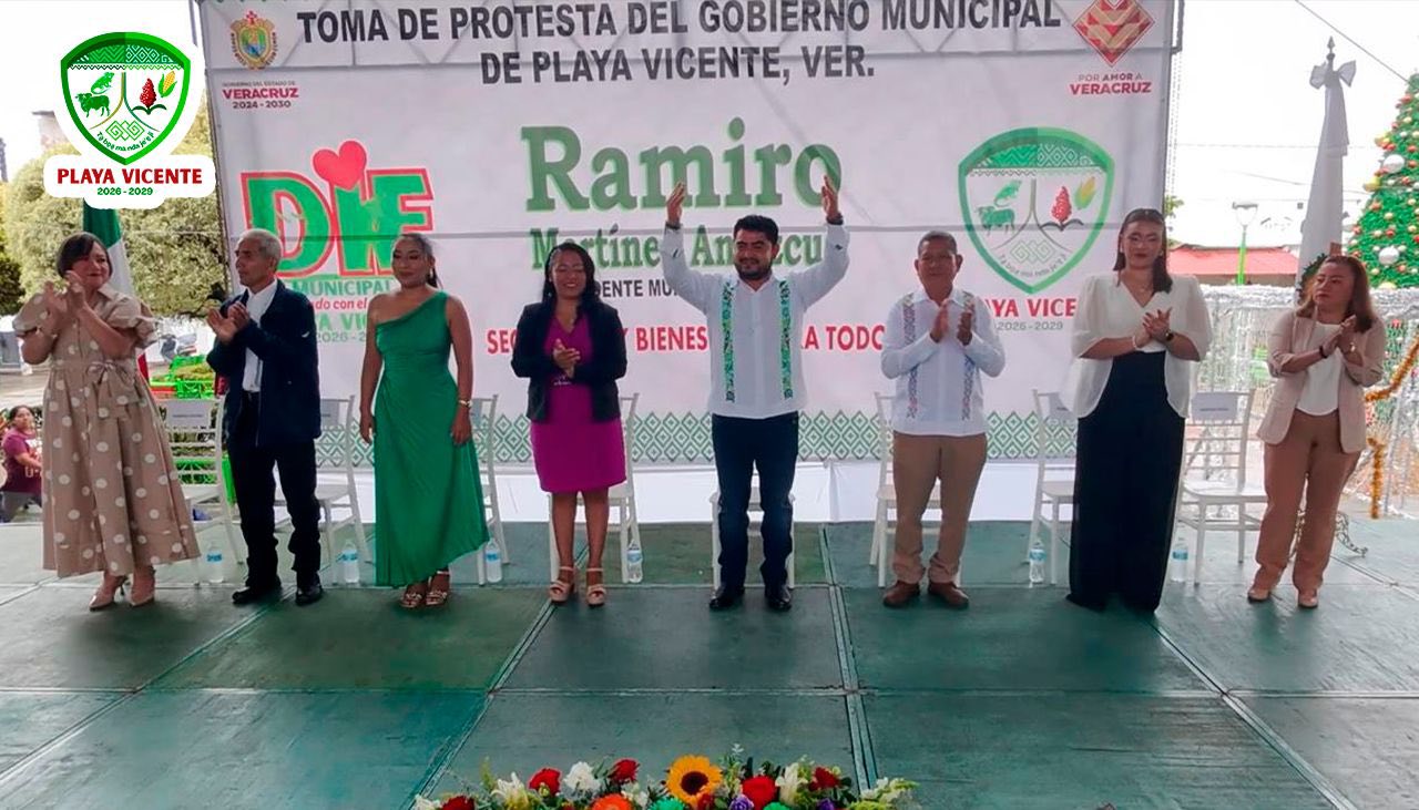 Ramiro Amezcua Martínez rinde protesta como alcalde de Playa Vicente 2026-2029 Playa Vicente, Ver. – 31 de diciembre de 2025. — Con un mensaje de esperanza, continuidad y compromiso social, Ramiro Martínez Amezcua rindió protesta como presidente municipal de Playa Vicente para el periodo 2026-2029, dando inicio a una nueva etapa de gobierno enfocada en fortalecer el bienestar, el desarrollo y la seguridad en todo el municipio. Durante su intervención, el alcalde destacó que Playa Vicente se encuentra en un momento clave para consolidar avances y abrir paso a nuevas…