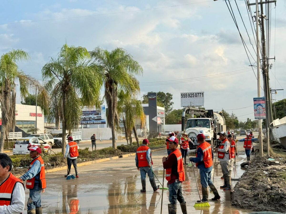 A pesar del esfuerzo, en colonias más alejadas —como Prolongación 16 de Septiembre o Sacate Colorado— el nivel del agua sigue siendo alto y la presencia de lodo dificulta la movilidad.
