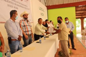 En el que estuvieron presentes la Sindica Única Olivia Amezcua, el Presidente de la Ganadera Local Christian Manuel Vázquez Feria, el Director del INPI Antr. Juan Mariano Fernandez Flores entre otros.
