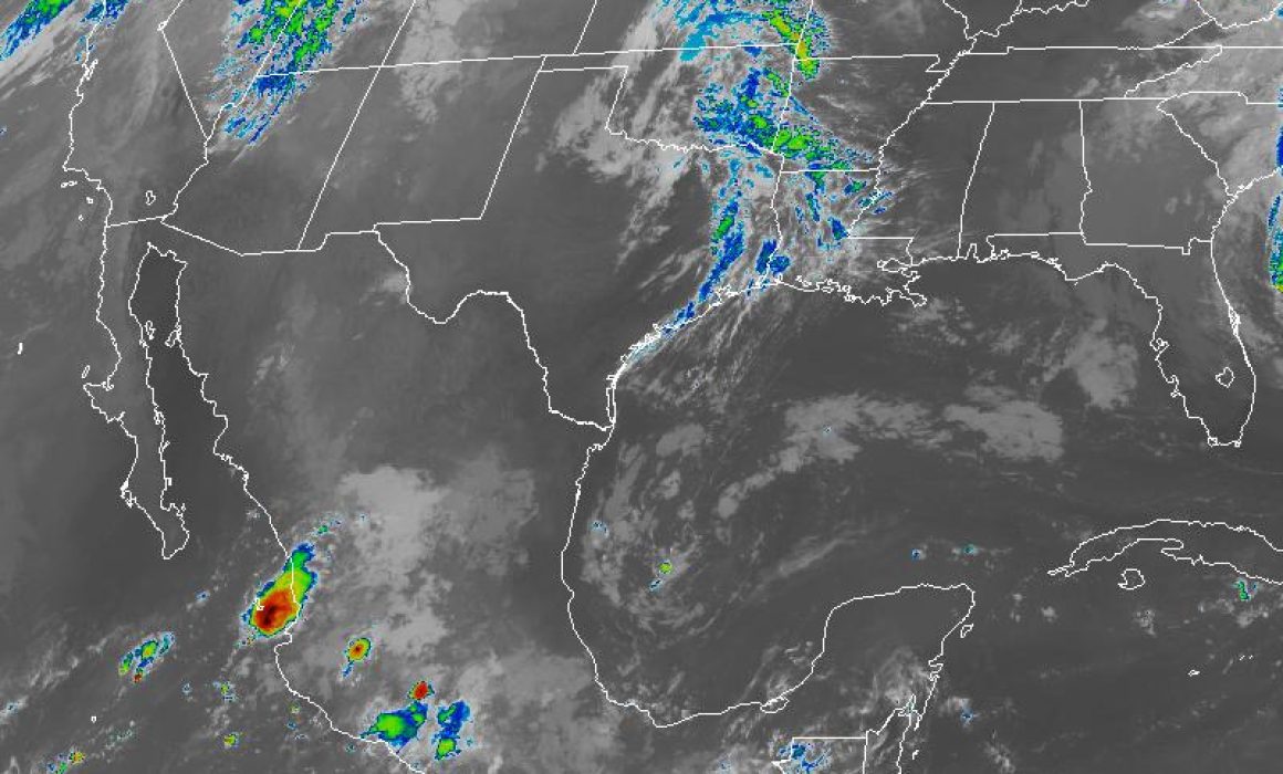 Según los modelos atmosféricos, una vaguada con eje en el suroeste del Golfo de México interactúa con el disturbio tropical 90E en el Pacífico, generando condiciones para lluvias fuertes en toda la entidad.